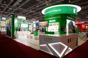 (251105) — SHANGHAI, 5 noviembre, 2025 (Xinhua) — Imagen del 5 de noviembre de 2025 del Pabellón de Nigeria durante la VIII Exposición Internacional de Importaciones de China (CIIE, por sus siglas en inglés), en Shanghai, en el este de China. La VIII CIIE se inauguró aquí el miércoles. Tailandia, Emiratos Arabes Unidos, Nigeria, Georgia, Suecia y Colombia son los países invitados de honor en la CIIE de este año. (Xinhua/Tian Weiwei) (ah) (ra) (ce)