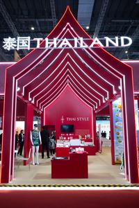 (251105) -- SHANGHAI, 5 noviembre, 2025 (Xinhua) -- Imagen del 5 de noviembre de 2025 del Pabellón de Tailandia durante la VIII Exposición Internacional de Importaciones de China (CIIE, por sus siglas en inglés), en Shanghai, en el este de China. La VIII CIIE se inauguró aquí el miércoles. Tailandia, Emiratos Arabes Unidos, Nigeria, Georgia, Suecia y Colombia son los países invitados de honor en la CIIE de este año. (Xinhua/Tian Weiwei) (ah) (ra) (ce)