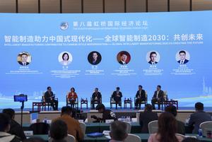 (251106) -- SHANGHAI, 6 noviembre, 2025 (Xinhua) -- Un subforo titulado "La Manufactura Inteligente Contribuye a la Modernización al Estilo Chino -- Manufactura Inteligente global 2030: Co-creando el Futuro" es celebrado durante VIII Foro Económico Internacional de Hongqiao en el Centro Nacional de Exposiciones y Convenciones (Shanghai), en Shanghai, en el este de China, el 6 de noviembre de 2025. (Xinhua/Fan Yuqing) (jg) (ah) (da)