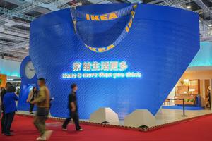 (251105) -- SHANGHAI, 5 noviembre, 2025 (Xinhua) -- Personas caminan junto al estand de IKEA en el área de exposición de Bienes de Consumo de la VIII Exposición Internacional de Importaciones de China (CIIE, por sus siglas en inglés), en Shanghai, en el este de China, el 5 de noviembre de 2025. Con la mayor área de exhibición en su historia y un número récord de expositores, la VIII CIIE, bajo el tema "Nueva Era, Futuro Compartido", ha atraído a 4.108 expositores extranjeros de 155 países, regiones y organizaciones internacionales, con una superficie total de exhibición que supera los 430.000 metros cuadrados. (Xinhua/Zhang Ziyu) (jg) (da) (ce)
