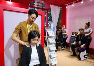 (251105) -- SHANGHAI, 5 noviembre, 2025 (Xinhua) -- Visitantes prueban el masaje de estilo tailandés en el Pabellón de Tailandia de la VIII Exposición Internacional de Importaciones de China (CIIE, por sus siglas en inglés), en Shanghai, en el este de China, el 5 de noviembre de 2025. Con la mayor área de exhibición en su historia y un número récord de expositores, la VIII CIIE, bajo el tema "Nueva Era, Futuro Compartido", ha atraído a 4.108 expositores extranjeros de 155 países, regiones y organizaciones internacionales, con una superficie total de exhibición que supera los 430.000 metros cuadrados. (Xinhua/Wang Zecong) (jg) (da) (ce)
