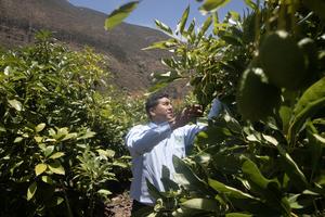 (251106) — HUARAL, 6 noviembre, 2025 (Xinhua) — Imagen del 1 de noviembre de 2025 de Elvis Santos, propietario del Fundo Don Moisés Añascary, mostrando sus plantas de palta, en Huaral, Perú. Empresarios peruanos de los sectores turístico y agrícola que participan en la VIII Exposición Internacional de Importaciones de China (CIIE, por sus siglas en inglés) destacaron la relevancia de este evento no solo como una plataforma comercial, sino también como un espacio clave para fortalecer el intercambio cultural entre Perú y China. (Xinhua/Mariana Bazo) (mb) (rtg) (ra) (da)