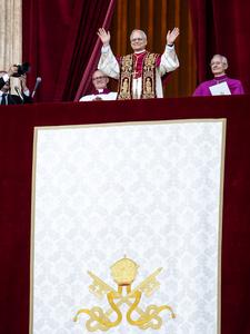 (250508) -- CIUDAD DEL VATICANO, 8 mayo, 2025 (Xinhua) -- Robert Francis Prevost (c) saluda a la multitud tras ser elegido como el nuevo papa, en la Ciudad del Vaticano, el 8 de mayo de 2025. Robert Francis Prevost, cardenal de Estados Unidos, fue elegido como el nuevo papa en el segundo día de votaciones secretas en el cónclave cardenalicio realizado en la Ciudad del Vaticano. El nombre que eligió como nuevo papa es León XIV. (Xinhua/Li Jing) (jg) (ah) (ce)