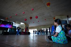 (260222) -- BOGOTA, 22 febrero, 2026 (Xinhua) -- Imagen del 21 de febrero de 2026 de personas asistiendo a una charla cultural durante la celebración del Año Nuevo chino organizada por la Casa Colombo China Brigada SOS, en Bogotá, Colombia. Con la retransmisión de la cuenta regresiva para la llegada del Año Nuevo chino culminó el sábado la semana de actividades culturales para esta celebración en la biblioteca pública Virgilio Barco de la ciudad de Bogotá, Colombia. (Xinhua/Andrés Moreno) (am) (rtg) (ah)