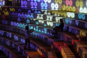 (250919) — BOGOTA, 19 septiembre, 2025 (Xinhua) — Imagen del 17 de septiembre de 2025 de personas tomándose una fotografía durante el ensayo general del espectáculo «La Casa Común», una experiencia con video mapping, iluminación y sonido, en el marco de la Bienal Internacional de Arte y Ciudad BOG25, en la Plaza Cultural La Santamaría, en Bogotá, capital de Colombia. (Xinhua/Andrés Moreno) (am) (rtg) (ra) (vf)