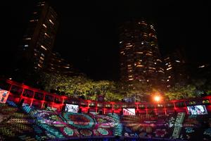 (250919) -- BOGOTA, 19 septiembre, 2025 (Xinhua) -- Imagen del 17 de septiembre de 2025 del ensayo general del espectáculo "La Casa Común", una experiencia con video mapping, iluminación y sonido, en el marco de la Bienal Internacional de Arte y Ciudad BOG25, en la Plaza Cultural La Santamaría, en Bogotá, capital de Colombia. (Xinhua/Andrés Moreno) (am) (rtg) (ra) (vf)