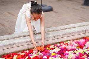 (250920) — BOGOTA, 20 septiembre, 2025 (Xinhua) — Una niña coloca una flor en la instalación floral «El Canto del Río» en el marco de la Bienal Internacional de Arte y Ciudad BOG25, en Bogotá, capital de Colombia, el 20 de septiembre de 2025. (Xinhua/Andrés Moreno) (am) (oa) (ra) (ce)