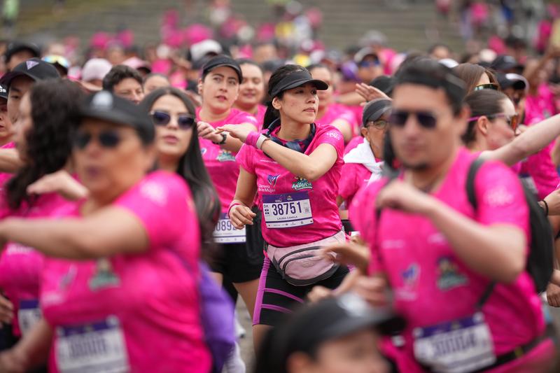 (250907) -- BOGOTA, 7 septiembre, 2025 (Xinhua) -- Personas calientan previo a participar en la Carrera de la Mujer, en Bogotá, capital de Colombia, el 7 de septiembre de 2025. La ciudad de Bogotá enmarcó el domingo una nueva edición de la Carrera de la Mujer bajo el lema "Fuerza en el Corazón", en la que participaron unas 18.000 personas en las inmediaciones del Parque Metropolitano Simón Bolívar, al ser la actividad con mayor presencia de mujeres en Colombia. (Xinhua/Andrés Moreno) (am) (oa) (da)