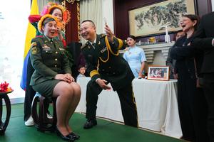 (250925) -- BOGOTA, 25 septiembre, 2025 (Xinhua) -- Imagen del 24 de septiembre de 2025 de personas participando en un acto cultural durante una recepción por el 76° aniversario de la fundación de la República Popular China, celebrada en la residencia del embajador de China en Colombia, en Bogotá, capital de Colombia. Destacadas personalidades de la política colombiana, empresarios y miembros de la comunidad china en Colombia celebraron la noche del miércoles el 76º aniversario de la fundación de la República Popular China en una recepción organizada por la Embajada de China en este país sudamericano. (Xinhua/Andrés Moreno) (am) (rtg) (ra) (vf)