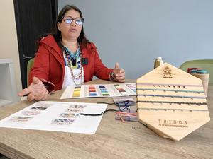 (251030) — BOGOTA, 30 octubre, 2025 (Xinhua) — Imagen del 29 de octubre de 2025 de la diseñadora de modas y artesana, Carolina Alvarez Gómez, creadora de la compañía Tribus Tejemos Pensamiento, mostrando algunas de sus piezas, en Bogotá, capital de Colombia. Las pulseras y gargantillas de la empresa colombiana Tribus Tejemos Pensamiento, fabricadas por mujeres cabezas de hogar de la Sierra Nevada de Santa Marta y de Bogotá, estarán presentes en el pabellón del país invitado de honor de la 8ª Exposición Internacional de Importaciones de China (CIIE, según siglas en inglés), que se celebrará en Shanghai del 5 al 10 de noviembre. (Xinhua/César Marino G.) (am) (jg) (ah) (ce)