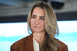 (250617) -- BOGOTÁ, 17 junio, 2025 (Xinhua) -- Imagen del 16 de junio de 2025 de la encargada de fortalecer los programas internacionales de la Universidad de los Andes, Johana Mick Clausen, reaccionando durante un acto de donación de libros a la Universidad de los Andes, en la ciudad de Bogotá, capital de Colombia. Con la implementación de un programa cultural denominado "That's China Bookshelf" ("Esa es la estantería china de libros"), el consorcio Metro Línea 1, que construye ese tramo del metro de Bogotá, donó el lunes un lote de más de 300 libros a la Universidad de Los Andes, radicada en la capital de Colombia. (Xinhua/Andrés Moreno) (am) (jg) (ra) (vf)