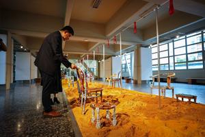 (251125) -- BOGOTA, 25 noviembre 2025 (Xinhua) -- Imagen del 24 de noviembre de 2025 de un hombre observando la exposición "Rail Car" del artista chino-estadounidense, Charlie Mai, en el marco del decimotercer aniversario del Instituto Confucio de la Universidad Jorge Tadeo Lozano, en Bogotá, Colombia. El Instituto Confucio de la Universidad Jorge Tadeo Lozano de Bogotá celebra el decimotercer aniversario de su fundación con la exposición "Rail Car", del artista chino-estadounidense, Charlie Mai, que refleja la cooperación entre Colombia y China, y se presenta del 24 de noviembre al 9 de diciembre en la capital colombiana. (Xinhua/Andrés Moreno) (am) (oa) (ah) (vf)