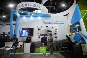 (250828) -- BOGOTA, 28 agosto, 2025 (Xinhua) -- Personas conversan en un estand del pabellón chino durante la Feria Internacional de Seguridad "ESS+" llevada a cabo en el recinto ferial Corferias, en Bogotá, capital de Colombia, el 28 de agosto de 2025. Con la presencia de un pabellón de 20 empresas y marcas relevantes dedicadas al sector de la seguridad, China marca de nuevo la tendencia del mercado dentro de la Feria Internacional de Seguridad "ESS+" que se lleva a cabo del 27 al 29 de agosto en el recinto ferial Corferias de la ciudad de Bogotá. (Xinhua/Andrés Moreno) (am) (rtg) (ra) (ce)