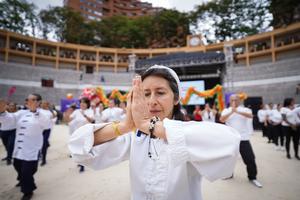 (250823) -- BOGOTA, 23 agosto, 2025 (Xinhua) -- Una mujer practica Tai Chi durante el II Festival de Tai Chi y Qigong en el marco del Festival de Verano de Bogotá en la Plaza Cultural La Santamaría, en Bogotá, capital de Colombia, el 23 de agosto de 2025. El II Festival de Tai Chi y Qigong deleitó a por lo menos 2.000 personas en la capital colombiana con presentaciones y sesiones de esta práctica considerada Patrimonio Cultural Inmaterial de la Humanidad de la Organización de las Naciones Unidas para la Educación, la Ciencia y la Cultura. (Xinhua/Andrés Moreno) (am) (jg) (da)