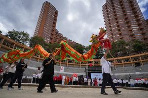 (250823) -- BOGOTA, 23 agosto, 2025 (Xinhua) -- Personas realizan la danza del dragón durante el II Festival de Tai Chi y Qigong en el marco del Festival de Verano de Bogotá en la Plaza Cultural La Santamaría, en Bogotá, capital de Colombia, el 23 de agosto de 2025. El II Festival de Tai Chi y Qigong deleitó a por lo menos 2.000 personas en la capital colombiana con presentaciones y sesiones de esta práctica considerada Patrimonio Cultural Inmaterial de la Humanidad de la Organización de las Naciones Unidas para la Educación, la Ciencia y la Cultura. (Xinhua/Andrés Moreno) (am) (jg) (da)