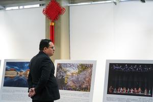 (250909) -- BOGOTA, 9 septiembre, 2025 (Xinhua) -- Imagen del 8 de septiembre de 2025 de un hombre observando una exposición fotográfica durante la inauguración del Mes de la Cultura China organizado por el Instituto Confucio de la Universidad Jorge Tadeo Lozano, en Bogotá, capital de Colombia. Con la exposición fotográfica Historia de China y la participación de docentes, estudiantes y personal administrativo fue inaugurado el lunes el Mes de la Cultura China en la Universidad Jorge Tadeo Lozano de Bogotá, la capital de Colombia. (Xinhua/Andrés Moreno) (am) (jg) (ra) (vf)