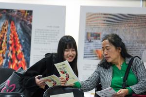 (250909) -- BOGOTA, 9 septiembre, 2025 (Xinhua) -- Imagen del 8 de septiembre de 2025 de mujeres revisando un folleto informativo durante la inauguración del Mes de la Cultura China organizado por el Instituto Confucio de la Universidad Jorge Tadeo Lozano, en Bogotá, capital de Colombia. Con la exposición fotográfica Historia de China y la participación de docentes, estudiantes y personal administrativo fue inaugurado el lunes el Mes de la Cultura China en la Universidad Jorge Tadeo Lozano de Bogotá, la capital de Colombia. (Xinhua/Andrés Moreno) (am) (jg) (ra) (vf)