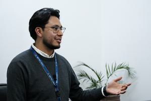 (250515) BOGOTÁ, 15 mayo, 2025 (Xinhua) -- Imagen del 29 de abril de 2025 de Leonardo Daniel Talledos, ingeniero electrónico encargado de mantener el adecuado funcionamiento de los trenes así como los estándares de calidad de las estaciones del proyecto de la primera línea del Metro de Bogotá, hablando durante una entrevista con la Agencia de Noticias Xinhua, en la ciudad de Bogotá, capital de Colombia. Tras una capacitación de catorce meses en la ciudad china de Xi'an (centro), diez jóvenes ingenieros colombianos han regresado al proyecto de la primera línea del Metro de Bogotá, ejecutado actualmente por el consorcio de las compañías China Harbour Engineering Company Limited (CHEC) y Xi'an Metro Company Limited. La obra, en estos momentos, registra un avance del 54 por ciento. (Xinhua/Andrés Moreno) (am) (da) (ra) (vf)