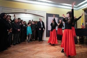 (250524) -- BOGOTA, 24 mayo, 2025 (Xinhua) -- Imagen del 22 de mayo de 2025 de personas observando una presentación cultural durante la inauguración de la exposición "El tiempo de los caballos y los carruajes, transportes e intercambios por la Ruta de la Seda" en la Biblioteca Museo Casa Lleras, en la ciudad de Bogotá, capital de Colombia. La Biblioteca Museo Casa Lleras de Bogotá abrió sus puertas la noche del jueves a la exposición "El tiempo de los caballos y los carruajes, transportes e intercambios por la Ruta de la Seda", una exhibición de fotografías, esculturas y objetos referentes a la red de rutas comerciales establecida por China en el siglo I a.C. y que conectó al país asiático con los principales mercados de ese continente y de Europa. (Xinhua/Andrés Moreno) (am) (jg) (da)