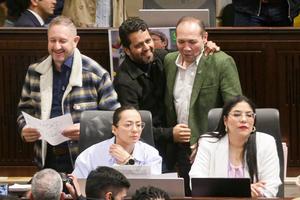 (250620) -- BOGOTÁ, 20 junio, 2025 (Xinhua) -- Imagen proveída por COLPRENSA del ministro de Trabajo colombiano, Antonio Sanguino (d-atrás), reaccionando durante la aprobación de la reforma laboral en la Cámara de Representantes del Congreso de la República, en la ciudad de Bogotá, capital de Colombia, el 20 de junio de 2025. (Xinhua/Lina Gasca/COLPRENSA) (cl) (rtg) (ra) (ce)