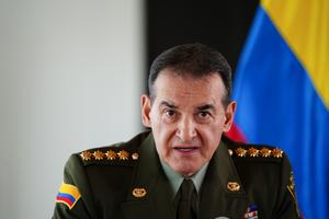 (250123) -- BOGOTA, 23 enero, 2025 (Xinhua) -- El director de la Policía, general William Salamanca, habla durante la rueda de prensa sobre la situación y las acciones institucionales en la región del Catatumbo, llevada a cabo en las instalaciones de la Fiscalía General de la Nación, en la ciudad de Bogotá, Colombia, el 23 de enero 2025. La crisis humanitaria y violencia que se vive en la región colombiana de Catatumbo (noreste), la cual ha dejado decenas de muertos y miles de desplazados y campesinos confinados, se está extendiendo a otras regiones del país como Guaviare (sur), alertó el jueves la fiscal colombiana, Luz Adriana Camargo. (Xinhua/Andrés Moreno) (am) (jg) (ah) (ce)