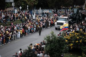 (250720) -- BOGOTA, 20 julio, 2025 (Xinhua) -- Personas observan el desfile militar para conmemorar el aniversario número 215 de la Independencia de Colombia, en Bogotá, capital de Colombia, el 20 de julio de 2025. (Xinhua/Andrés Moreno) (am) (rtg) (da)