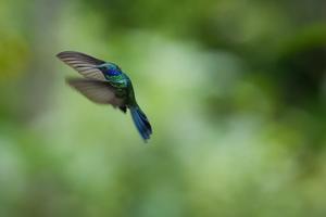 (250510) -- BOGOTA, 10 mayo, 2025 (Xinhua) -- Un colibrí verdemar vuela durante el avistamiento de aves Global Big Day en el sendero El Paramuno, en la ciudad de Bogotá, capital de Colombia, el 10 de mayo de 2025. Grupos de colombianos amantes de las aves se reunieron el sábado en el sendero El Paramuno del cerro de Monserrate en la ciudad de Bogotá para participar en el tradicional avistamiento de aves Global Big Day, que busca registrar la mayor cantidad de ejemplares en un solo día. (Xinhua/Andrés Moreno) (am) (oa) (da)