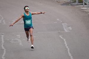 (250728) -- BOGOTA, 28 julio, 2025 (Xinhua) -- Imagen del 27 de julio de 2025 de un hombre participando en el Medio Maratón de Bogotá, en Bogotá, capital de Colombia. La edición anual del Medio Maratón de Bogotá cumplió el domingo 25 años como la principal carrera atlética llevada a cabo en calles y avenidas de la capital de Colombia, según difundieron los organizadores. (Xinhua/Andrés Moreno) (am) (oa) (ah)