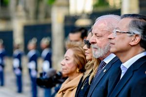 (250822) -- BOGOTA, 22 agosto, 2025 (Xinhua) -- Imagen proveída por el Palacio del Planalto del presidente colombiano, Gustavo Petro (d), y el presidente de Brasil, Luiz Inácio Lula da Silva (2-d), asistiendo a la cumbre presidencial de la Organización del Tratado de Cooperación Amazónica (OTCA), en Bogotá, capital de Colombia, el 22 de agosto de 2025. Los presidentes de Brasil, Luiz Inácio Lula da Silva, y de Colombia, Gustavo Petro, anunciaron medidas conjuntas para hacer frente al narcotráfico y otras economías ilegales que amenazan la región amazónica, en el marco de la cumbre presidencial de la OTCA que se celebró el viernes en Bogotá, la capital colombiana. (Xinhua/Ricardo Stuckert/Palacio del Planalto) (jg) (da) (ce)