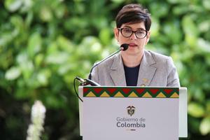 (250822) -- BOGOTA, 22 agosto, 2025 (Xinhua) -- Imagen cedida por COLPRENSA de la vicepresidenta sectorial de Ciencia, Tecnología, Educación y Salud venezolana, Gabriela Jiménez, hablando en una declaración conjunta en el marco de la cumbre presidencial de la Organización del Tratado de Cooperación Amazónica (OTCA), en Bogotá, capital de Colombia, el 22 de agosto de 2025. Los presidentes de Brasil, Luiz Inácio Lula da Silva, y de Colombia, Gustavo Petro, anunciaron medidas conjuntas para hacer frente al narcotráfico y otras economías ilegales que amenazan la región amazónica, en el marco de la cumbre presidencial de la OTCA que se celebró el viernes en Bogotá, la capital colombiana. (Xinhua/Lina Gasca/COLPRENSA) (oa) (ra) (ce)