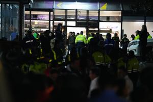 (250607) -- BOGOTA, 7 junio, 2025 (Xinhua) -- Personas se reúnen frente a la Clínica Fundación Santa Fe donde recibe atención médica el senador y precandidato presidencial colombiano, Miguel Uribe Turbay, después de ser víctima de un atentado, en la ciudad de Bogotá, capital de Colombia, el 7 de junio de 2025. Uribe Turbay resultó gravemente herido el sábado tras ser víctima de un atentado durante un evento electoral en el occidente de Bogotá. (Xinhua/Andrés Moreno) (am) (ra) (vf)