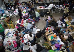 (250125) -- CÚCUTA, 25 enero, 2025 (Xinhua) -- Imagen proveída por COLPRENSA del 24 de enero de 2025 de personas desplazadas recibiendo asistencia y donaciones en el Estadio General Santander, donde están llegando personas desplazadas de la región del Catatumbo debido a la violencia, en Cúcuta, Colombia. El Gobierno de Colombia emitió el viernes un decreto que declara el estado de conmoción interior en varios municipios del noreste del país, en respuesta a la crisis en la región del Catatumbo provocada por la ofensiva de la guerrilla del Ejército de Liberación Nacional (ELN), que deja al menos 80 muertos y más de 40.000 desplazados en la última semana. (Xinhua/Catalina Olaya/COLPRENSA) (cl) (jg) (da)