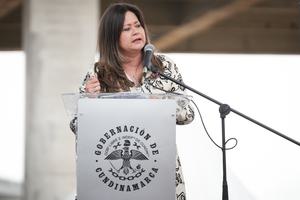 (250618) — FACATATIVA, 18 junio, 2025 (Xinhua) — Imagen del 17 de junio de 2025 de la ministra de Transporte colombiana, María Fernanda Rojas, hablando durante la ceremonia de inicio de obras del proyecto del tren de cercanías Regiotram de Occidente, en el municipio de Facatativá, en el departamento de Cundinamarca, Colombia. Con el levantamiento simbólico de un tramo de la antigua vía férrea que recorre la sabana de Bogotá, el martes comenzaron oficialmente las obras de un nuevo corredor para el tren de cercanías de la capital colombiana, cuyo concesionario es la compañía China Civil Engineering Construction Corporation. (Xinhua/Andrés Moreno) (am) (jg) (da) (vf)