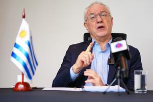 (251119) -- SANTA MARTA, 19 noviembre, 2025 (Xinhua) -- Imagen del 10 de noviembre de 2025 del ministro de Relaciones Exteriores uruguayo, Mario Lubetkin, hablando durante una entrevista en el marco de la IV Cumbre entre la Comunidad de Estados Latinoamericanos y Caribeños (CELAC) y la Unión Europea (UE), en Santa Marta, Colombia. Las relaciones Uruguay-China avanzan de manera continua en una dirección firme y positiva, afirmó Lubetkin durante su participación en la IV Cumbre entre la CELAC-UE, en la ciudad costera colombiana de Santa Marta. (Xinhua/Andrés Moreno) (am) (ah) (ra) (ce)
