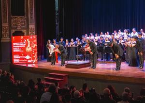 (260212) -- SAN JOSE, 12 febrero, 2026 (Xinhua) -- Imagen del 11 de febrero de 2026 de integrantes del Café Chorale de Costa Rica y el Coro Shenzhen Star Bright realizando una presentación durante el concierto de gala "Armonía del Mar" en el Teatro Nacional de Costa Rica, en San José, capital de Costa Rica. La Embajada de China en Costa Rica presentó el miércoles el concierto de gala "Armonía del Mar", protagonizado por el Coro de Star Bright de Shenzhen, que actuó junto al Café Chorale de Costa Rica en el Teatro Nacional de Costa Rica. (Xinhua/James Meneses) (rtg) (ra) (vf)