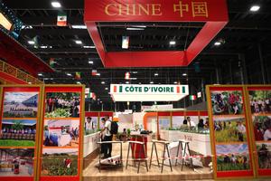 (250525) -- ABIYÁN, 25 mayo, 2025 (Xinhua) -- Imagen del 23 de mayo de 2025 de personas visitando el Pabellón de China durante la VII Exposición Internacional de Agricultura y Recursos Animales (SARA 2025) en el Centro de Exposiciones de Abiyán, en Abiyán, Cote d'Ivoire. La exposición, una importante feria agrícola en el oeste de Africa, abrió aquí el viernes, con China participando como invitado de honor. En un periodo de 10 días, se espera que la feria atraiga a más de 500.000 visitantes y cerca de 1.000 expositores presentando productos y servicios a lo largo de Africa, Asia y Europa. (Xinhua/Yvan Sonh) (rtg) (ah)