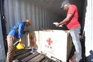 (250314) — ARTEMISA, 14 marzo, 2025 (Xinhua) — Trabajadores revisan un lote de donativos entregados a Cuba por parte del Gobierno de China para la ejecución de un proyecto de parques fotovoltaicos, en la provincia Artemisa, Cuba, el 14 de marzo de 2025. El Gobierno de China entregó el viernes en la occidental provincia cubana de Artemisa, a unos 50 kilómetros al oeste de La Habana, el primer lote de donativos para la ejecución de un proyecto de parques fotovoltaicos con asistencia china. (Xinhua/Joaquín Hernández) (jh) (jg) (da) (ce)
