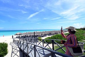 (250918) -- CAYO SANTA MARIA, 18 septiembre, 2025 (Xinhua) -- Imagen del 16 de septiembre de 2025 de una turista extranjera tomando una fotografía en una playa, en Cayo Santa María, en la provincia Villa Clara, Cuba. La industria turística cubana tiene entre sus principales objetivos incentivar el mercado chino, coincidieron directivos y turoperadores reunidos en Cayo Santa María, al norte del centro de la isla caribeña. (Xinhua/Joaquín Hernández) (jh) (da) (ra) (vf)