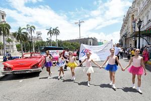 (250413) -- LA HABANA, 13 abril, 2025 (Xinhua) -- Imagen del 12 de abril de 2025 de bailarinas de ballet clásico participando en un desfile artístico por la Avenida del Prado para inaugurar el XXX Encuentro Internacional de Academias para la Enseñanza del Ballet, en La Habana, capital de Cuba. Varias decenas de bailarines de ballet clásico recorrieron calles de la zona antigua de La Habana para dejar inaugurado el XXX Encuentro Internacional de Academias para la Enseñanza del Ballet que se realiza del 11 al 20 de abril. (Xinhua/Joaquín Hernández) (jh) (rtg) (da)
