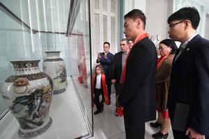 (260130) — LA HABANA, 30 enero, 2026 (Xinhua) — Imagen del 29 de enero de 2026 del embajador chino en Cuba, Hua Xin (i-frente), observando piezas de porcelana china expuesta durante la inauguración de la exposición «Susurros de arcilla: porcelanas chinas en el alma cubana» en el Museo Nacional de Artes Decorativas, en La Habana, capital de Cuba. Con motivo de la celebración del Año Nuevo chino, el jueves fue inaugurada en el Museo Nacional de Artes Decorativas de La Habana la exposición «Susurros de arcilla: porcelanas chinas en el alma cubana». (Xinhua/Joaquín Hernández) (jh) (jg) (da) (vf)