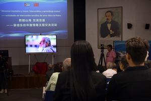 (251111) -- LA HABANA, 11 noviembre, 2025 (Xinhua) -- Imagen del 10 de noviembre de 2025 de personas observando el documental "Corazón cubano, sentimiento chino" durante la celebración de la colaboración científica entre China y Cuba en el Centro de Neurociencias de Cuba, en La Habana, capital de Cuba. Con el estreno en La Habana del documental de realización china "Corazón cubano, sentimiento chino", dedicado al eminente neurocientífico cubano, Pedro Valdés Sosa, investigadores y académicos de ambas naciones celebraron la colaboración científica entre China y Cuba. (Xinhua/Joaquín Hernández) (jh) (jg) (ra) (ce)