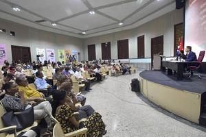 (251018) — LA HABANA, 18 octubre, 2025 (Xinhua) — Imagen del 17 de octubre de 2025 del embajador chino en Cuba, Hua Xin (d), realizando una intervención durante una Jornada Conmemorativa China-Cuba, como parte del programa de actividades por el 65º aniversario del establecimiento de relaciones diplomáticas entre ambas naciones, en La Habana, capital de Cuba. Las relaciones entre China y Cuba, sus bases históricas y los vínculos de cooperación en múltiples áreas, fueron analizados el viernes en la Universidad de La Habana. (Xinhua/Joaquín Hernández) (jh) (jg) (da)