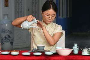 (250423) -- LA HABANA, 23 abril, 2025 (Xinhua) -- Una profesora de idioma chino realiza la tradicional ceremonia del té como parte de las actividades llevadas a cabo con motivo de la celebración del Día de la Lengua China en la sede del Instituto Confucio de La Habana, en La Habana, capital de Cuba, el 23 de abril de 2025. Jóvenes cubanos interesados en la lengua y cultura chinas participaron en diversas actividades organizadas por el Instituto Confucio de La Habana, con motivo de la reciente celebración del Día de la Lengua China. (Xinhua/Joaquín Hernández) (jh) (jg) (da) (vf)
