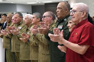 (250724) -- LA HABANA, 24 julio, 2025 (Xinhua) -- Imagen del 23 de julio de 2025 de altos jefes militares cubanos participando en la celebración del 98º aniversario de la fundación del Ejército Popular de Liberación (EPL), en La Habana, capital de Cuba. La Embajada de China en Cuba celebró el miércoles el 98º aniversario de la fundación del EPL con un acto al que asistieron altos jefes militares cubanos, funcionarios de la Cancillería de la isla y miembros del cuerpo diplomático. (Xinhua/Joaquín Hernández) (jh) (jg) (ah) (ce)