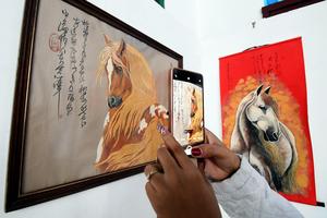 (260131) -- LA HABANA, 31 enero, 2026 (Xinhua) -- Imagen del 30 de enero de 2026 de una persona tomando una fotografía de una obra en la exposición "Pisadas de Fuego al ritmo de la tinta" del artista plástico Alexis Díaz Carbonell en la Casa de Artes y Tradiciones Chinas, en La Habana, capital de Cuba. La exposición "Pisadas de Fuego al ritmo de la tinta", del artista plástico Alexis Díaz Carbonell, fue inaugurada el viernes en la Casa de Artes y Tradiciones Chinas de La Habana como parte de las celebraciones de la Fiesta de la Primavera en Cuba. (Xinhua/Joaquín Hernández) (jh) (oa) (da)