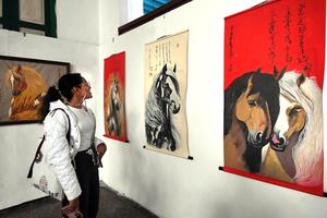 (260131) -- LA HABANA, 31 enero, 2026 (Xinhua) -- Imagen del 30 de enero de 2026 de una mujer observando obras en la exposición "Pisadas de Fuego al ritmo de la tinta" del artista plástico Alexis Díaz Carbonell, en la Casa de Artes y Tradiciones Chinas, en La Habana, capital de Cuba. La exposición "Pisadas de Fuego al ritmo de la tinta", del artista plástico Alexis Díaz Carbonell, fue inaugurada el viernes en la Casa de Artes y Tradiciones Chinas de La Habana como parte de las celebraciones de la Fiesta de la Primavera en Cuba. (Xinhua/Joaquín Hernández) (jh) (oa) (da)