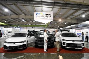 (250402) -- LA HABANA, 2 abril, 2025 (Xinhua) -- Imagen del 1 de abril de 2025 del expositor de la empresa china Yikoto, Huo Qi (i), conversando con un periodista en la III Feria Internacional de Transporte y Logística (FITL 2025) en el recinto ferial de Pabexpo, en La Habana, capital de Cuba. Cuba mantuvo la apuesta por China en la intención gubernamental de recuperar el deteriorado sistema de transporte público, se conoció el martes durante la inauguración en La Habana de la III FITL 2025, a la que asistió el primer ministro, Manuel Marrero. (Xinhua/Joaquín Hernández) (jh) (jg) (da) (vf)