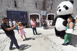 (250503) -- LA HABANA, 3 mayo, 2025 (Xinhua) -- Imagen del 2 de mayo de 2025 de una mujer posando para una fotografía junto a una persona disfrazada de panda en el Parque Histórico Militar Morro-Cabaña, sede de la edición 43 de la Feria Internacional del Turismo FITCuba 2025, en La Habana, capital de Cuba. El presidente Miguel Díaz-Canel destacó la importancia de la creciente llegada de vacacionistas chinos para la economía de Cuba, que trata de reimpulsar a la industria turística, otrora "Locomotora de economía nacional". (Xinhua/Joaquín Hernández) (jh) (jg) (da)