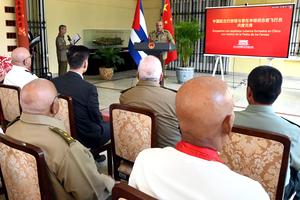 (260304) -- LA HABANA, 4 marzo, 2026 (Xinhua) -- Imagen del 3 de marzo de 2026 del primer coronel Salustiano Ruiz del Real, jefe de la Fuerza Aérea del Ministerio de las Fuerzas Armadas Revolucionarias de Cuba, pronunciando un discurso durante una reunión con motivo del Festival de las Linternas en la Embajada de China en Cuba, en La Habana, capital de Cuba. Un grupo de cubanos, ex pilotos de combate y técnicos de vuelo formados en China hace más de 60 años, se reunieron el martes en la Embajada de China en Cuba con motivo del Festival de las Linternas. (Xinhua/Joaquín Hernández) (jh) (ah) (ra) (vf)