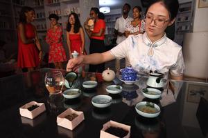 (251001) -- LA HABANA, 1 octubre, 2025 (Xinhua) -- Imagen del 30 de septiembre de 2025 de una profesora china realizando la ceremonia del té en una actividad por la Fiesta del Medio Otoño y el Día Nacional de China llevada a cabo en la sede del Instituto Confucio de La Habana, en La Habana, capital de Cuba. Un grupo de profesores y estudiantes chinos asentados en Cuba comenzaron las actividades por la Fiesta del Medio Otoño y el Día Nacional de China. (Xinhua/Joaquín Hernández) (jh) (jg) (ra) (vf)